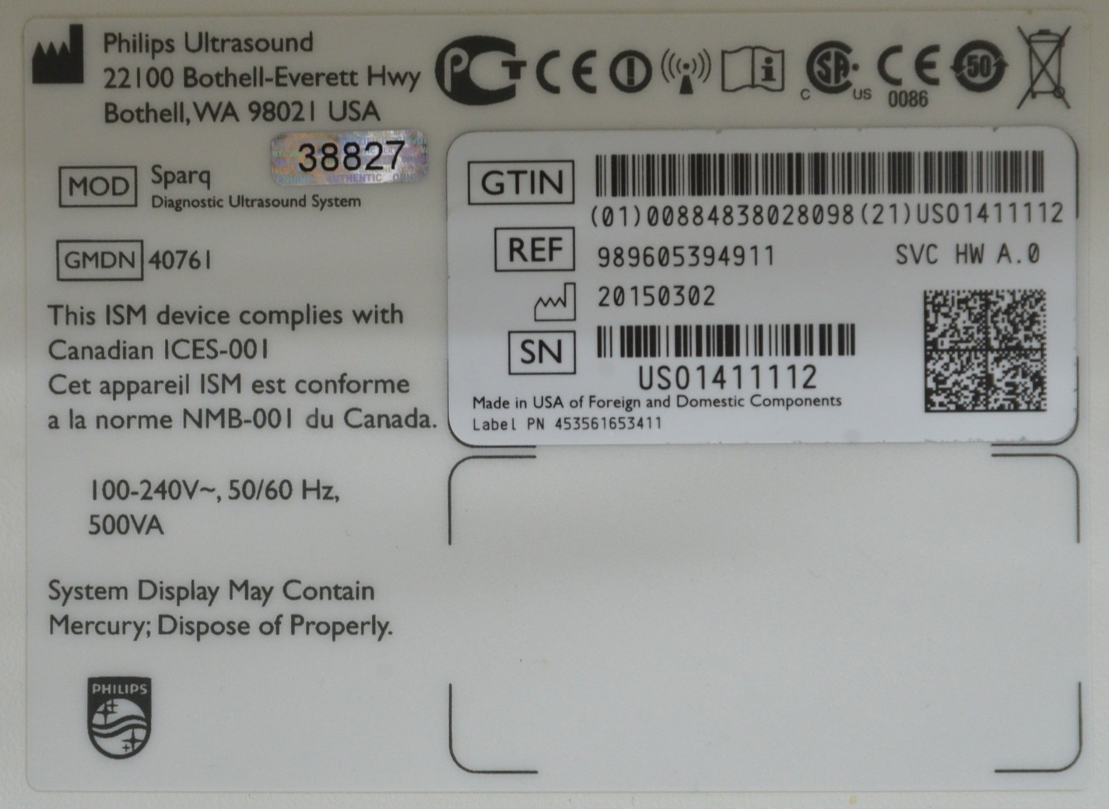 Philips Sparq Diagnostic Ultrasound Machine 2015