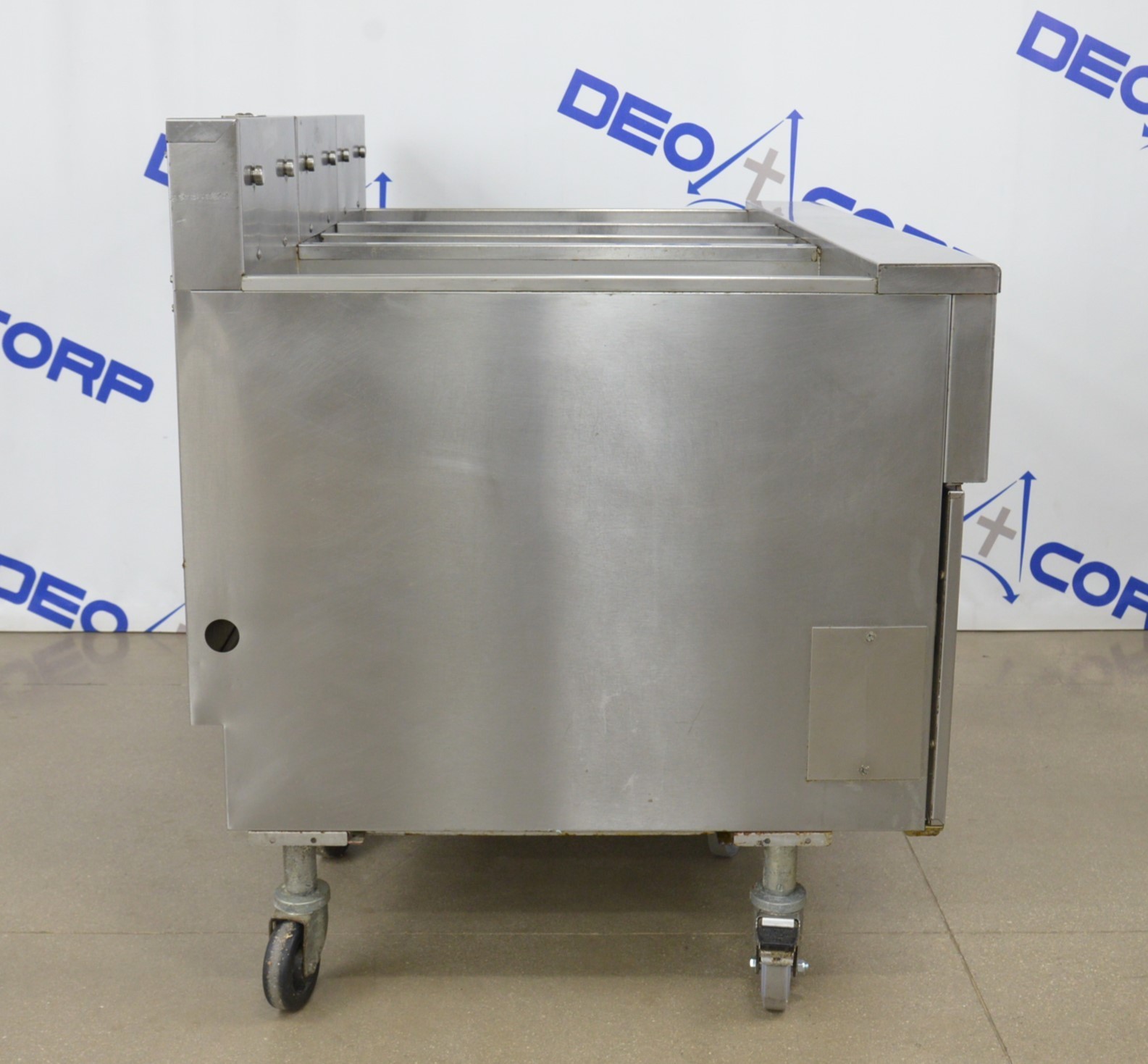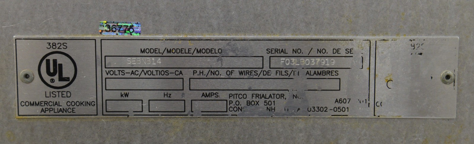 This Pitco 3 Bay Commercial Electric Fryer SE14T-S, SE14-S, SEBNB14 480V 3ph came from a working environment and is in good cosmetic condition. The connections are clean and in good condition. The drain tee (B666520), elbow drain (B6665101), and drain line sleeve gasket have corrosion and holes, they will need to be replaced. There are scuff marks and scratches from previous use (see photos). This unit comes with a 30 day satisfaction guarantee. Includes everything in the pictures and nothing else.