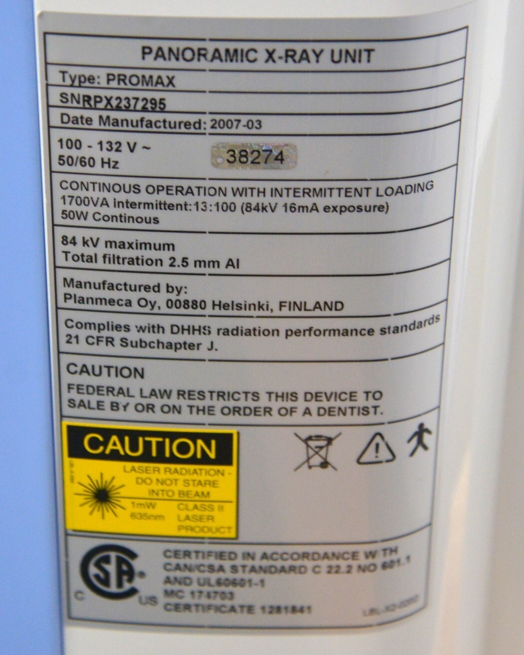Planmeca Promax® 2D S3 X-ray unit 2007 W/ Diamex 4 Image Receptor 2019