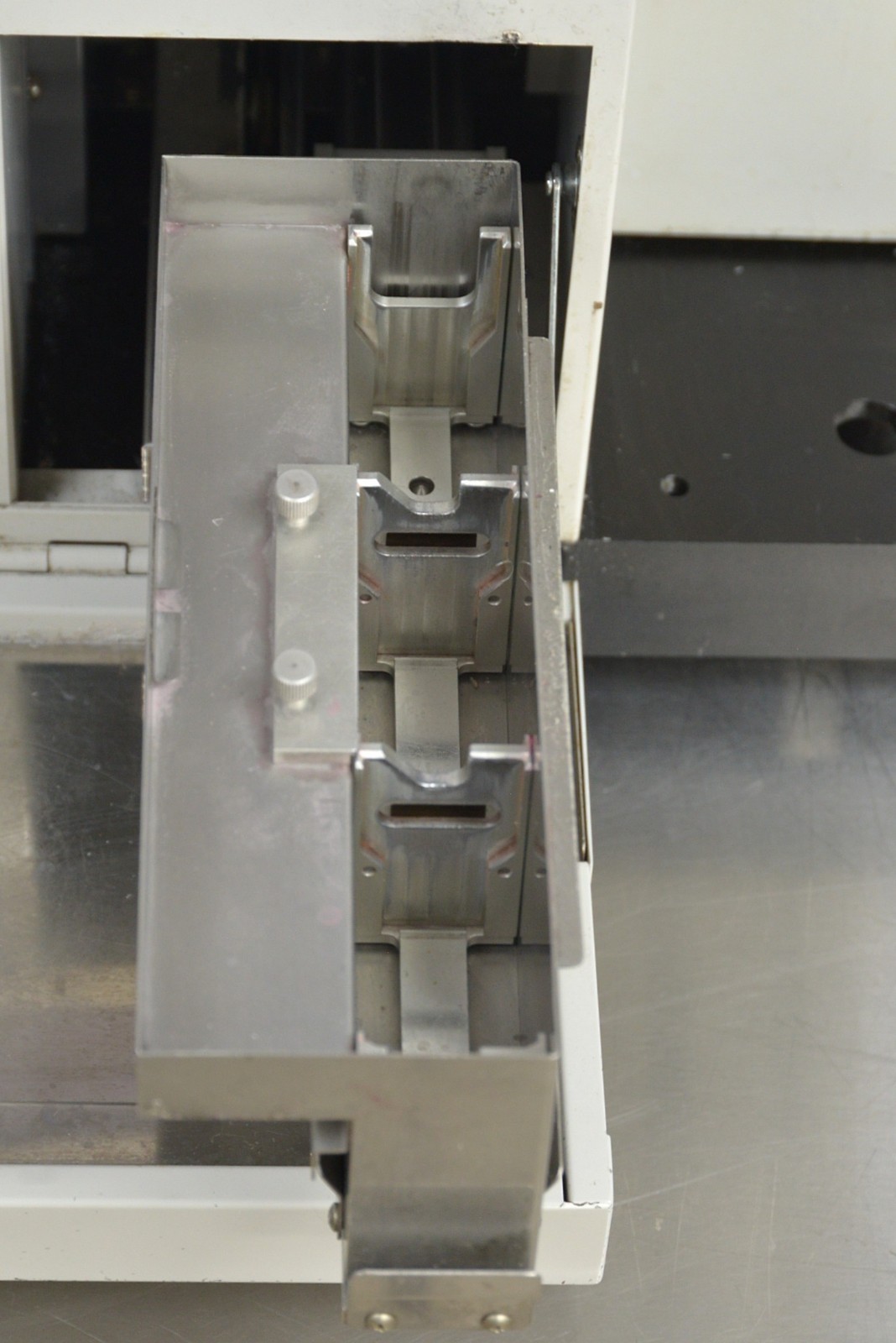 This Sakura Finetek 6400 Tissue-Tek Glas Automated Glass Coverslipper is in good working condition. The unit powers on and the display screen responds to selections. The unit operates without any movement failure. There are some minor scuff marks from previous use (see photos) This unit comes with a 30 day money back guarantee. Includes everything in the pictures and nothing else.