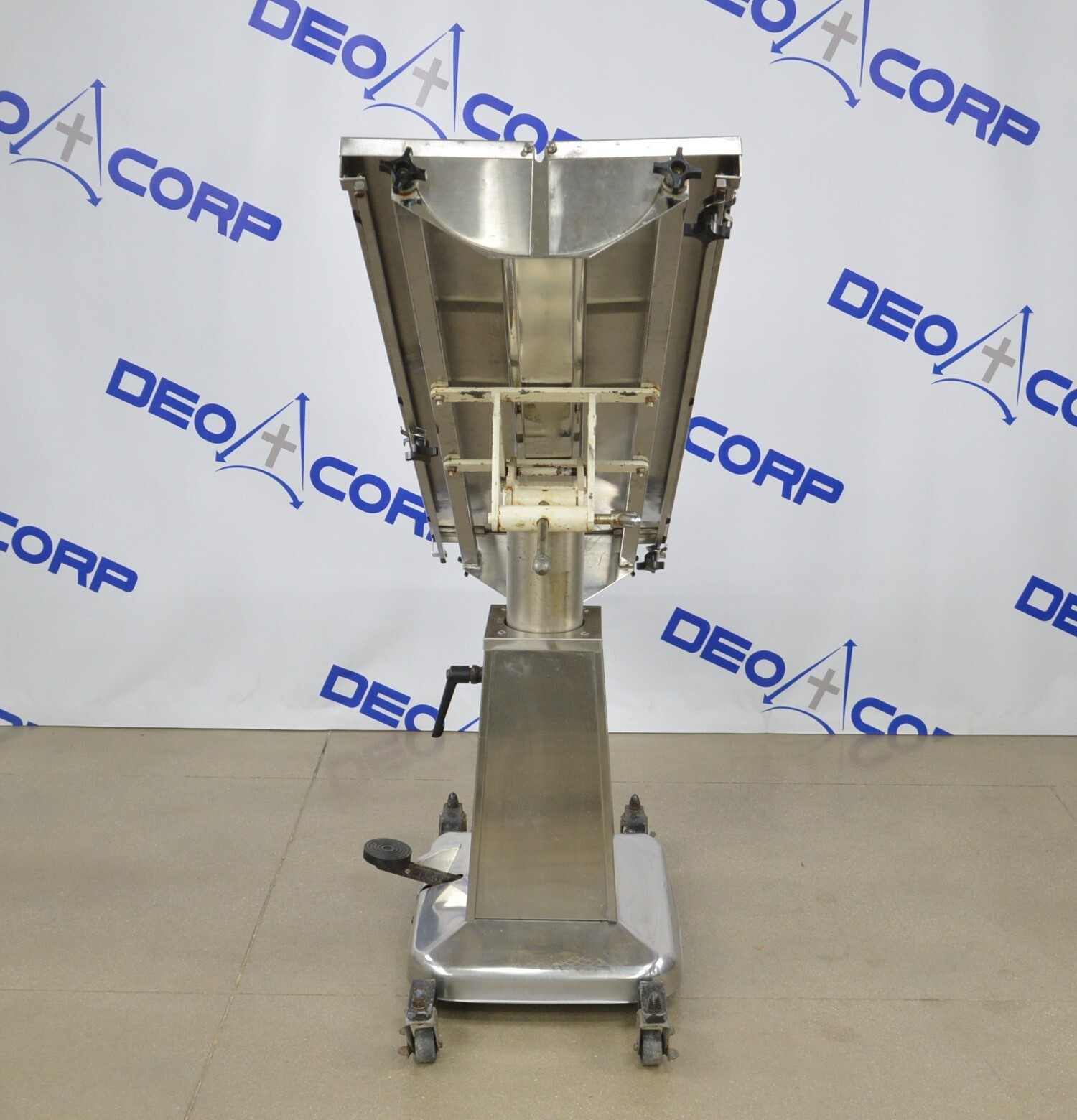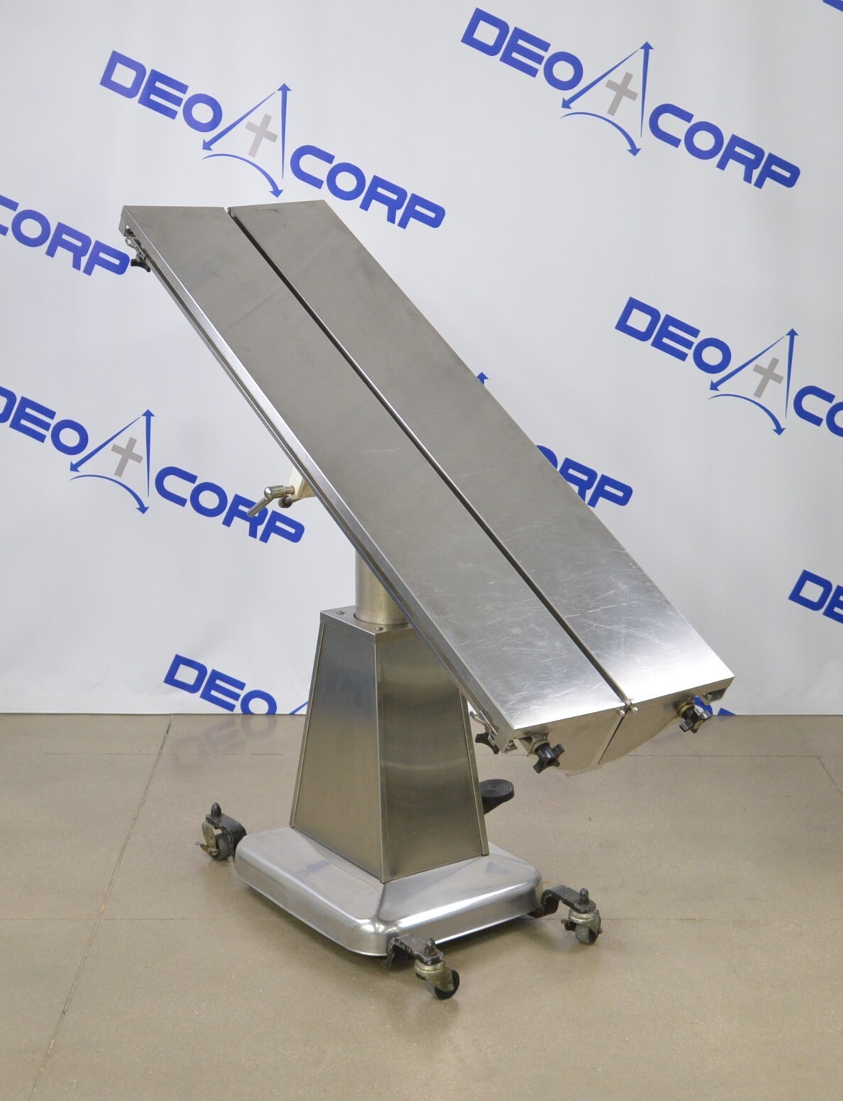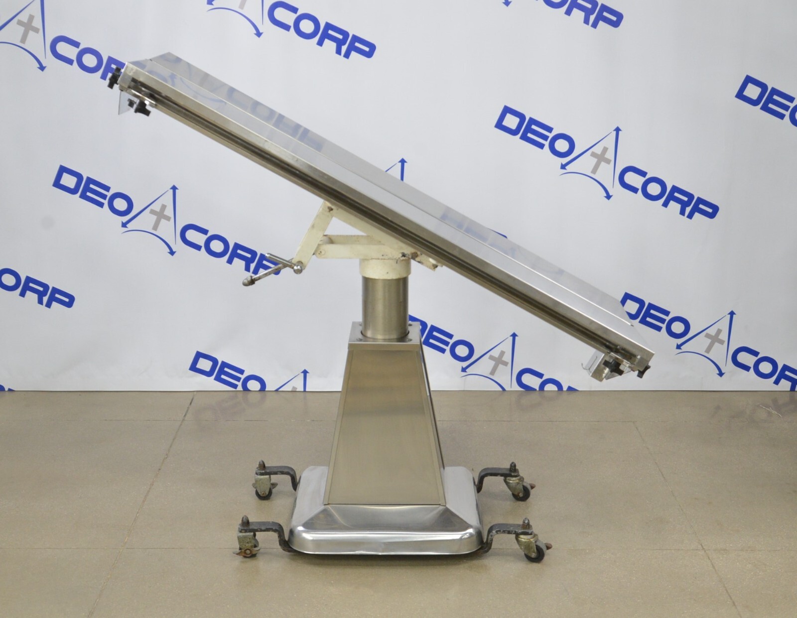 This Shor-Line Surgical V-Top Table Veterinary Hydraulic Lift 58″ is in good cosmetic condition. The unit raises and lowers properly. The unit does not fully tilt and there is rusting in some areas, for these reasons its being sold for parts. There are some scuff marks from previous use (see photos). Includes everything in the pictures and nothing else.