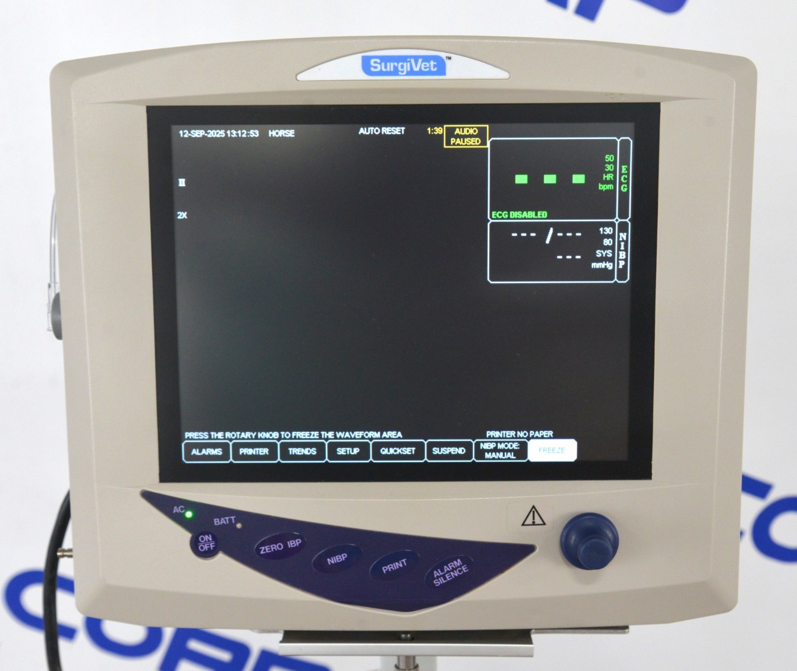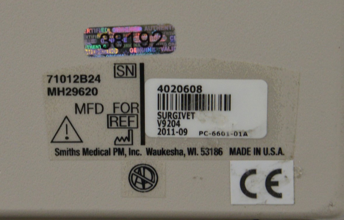 Smiths Medical SurgiVet Vital Signs Monitor V9204 2011 W/ Masimo SpO2, NiBP, 3-Lead ECG, Temp & Rolling Cart