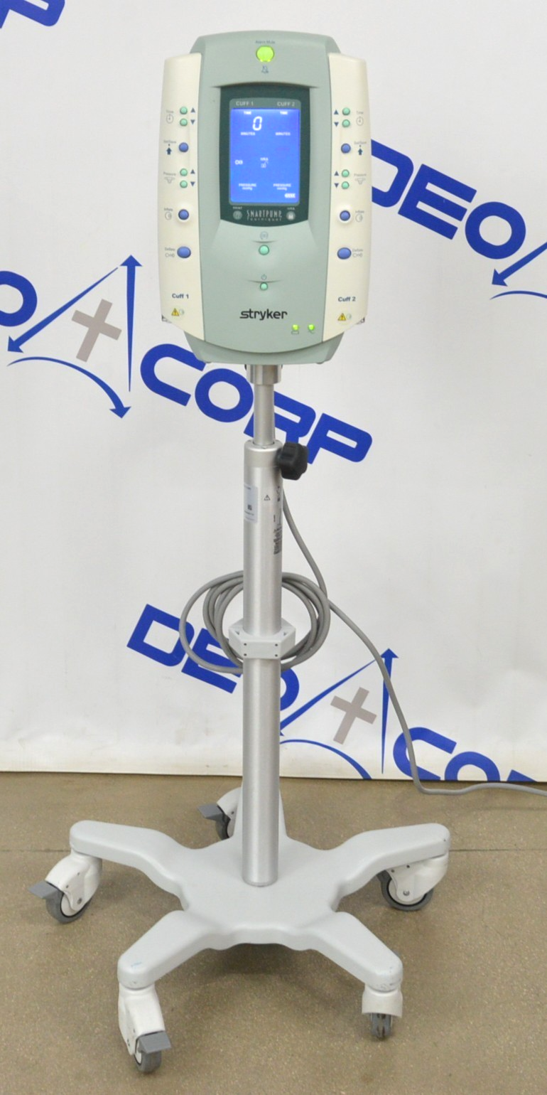 This Stryker SmartPump Dual Channel Pump Tourniquet System 5020-011 w/ Rolling Stand came is in good working condition. The unit powers on and the battery hold a charge. The connections are clean and in good condition. The screen produces a clear image. There are some minor scuff marks from previous use (see photos). This unit comes with a 30 day money back guarantee. Includes everything in the pictures and nothing else.