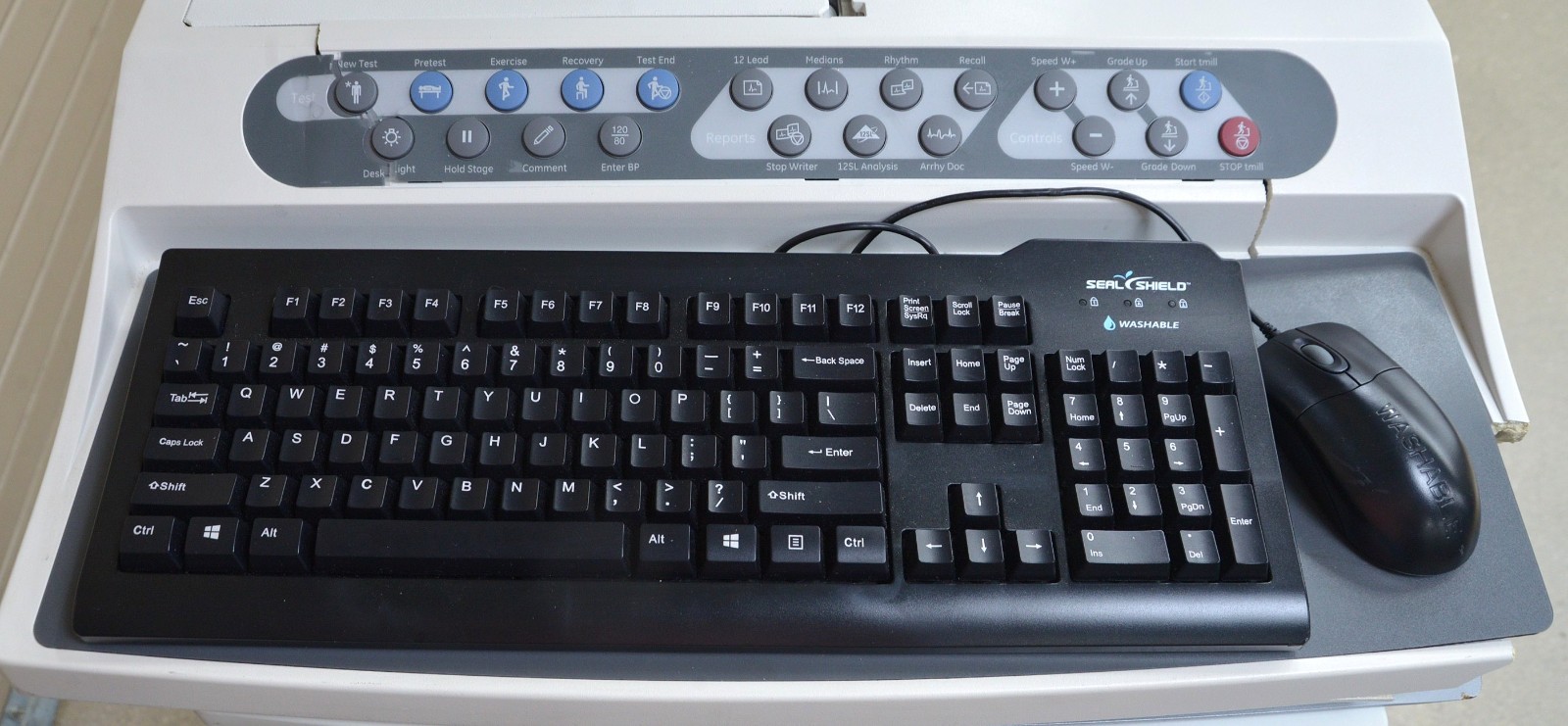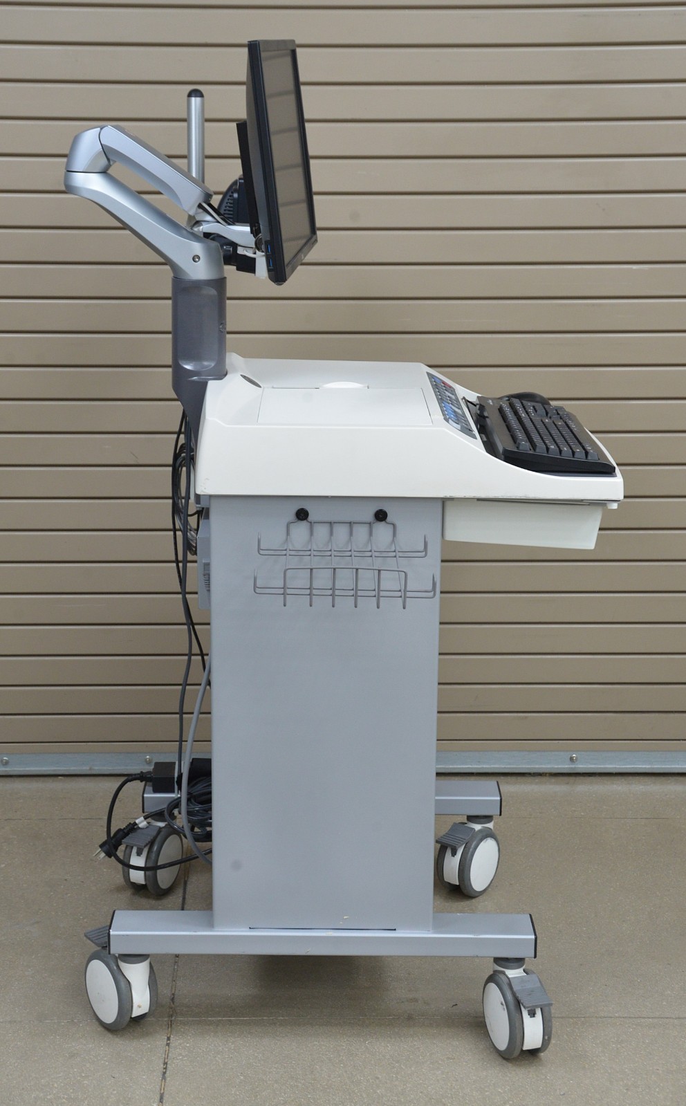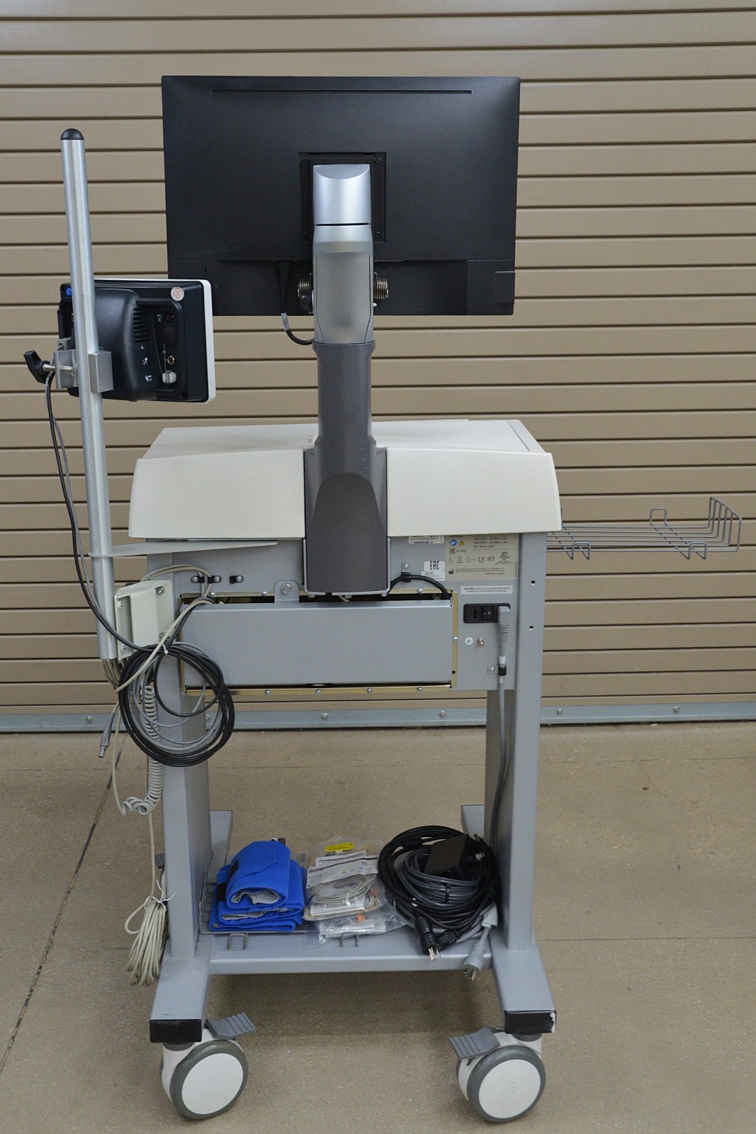 This SunTech Tango M2 2130 BP Display w/ GE HealthCare CASE V6.73 Stress System is in good condition. The SunTech Tango M2 2130 BP Display powers on, produces a clear image and responds properly to selection. The connections are clean and in good condition. The GE HealthCare CASE V6.73 Stress System does not power on due to a damaged mother board. The cart is cracked and bent edge on the front. there are scuff marks from previous use (see photos). This unit comes with a 30 day money back guarantee. Includes everything in the pictures and nothing else.