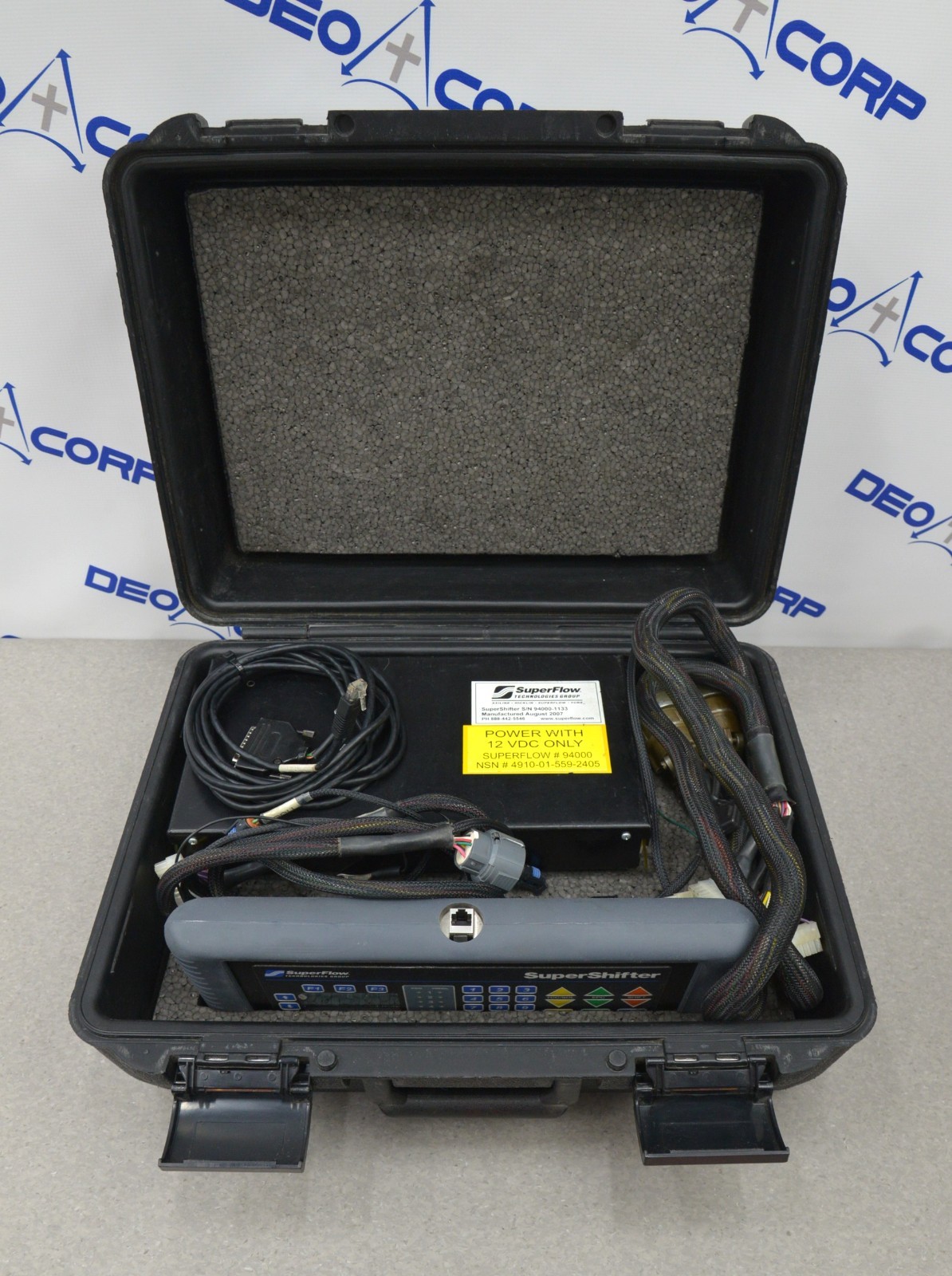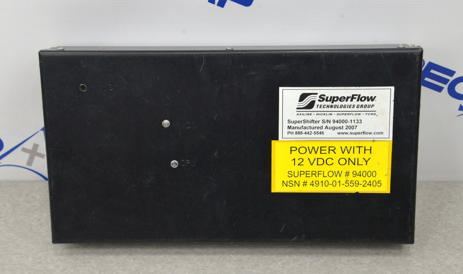 This SuperFlow 4L80E Transmission Tester SuperShifter 94000 For Hummer HMMWV came from a working environment and is good cosmetic condition. The connection points are clean and in good condition. There are scuff marks from previous use (see photos). This is powered by 12 VDC. This unit comes with a 30 day satisfaction guarantee. Includes everything in the pictures and nothing else.