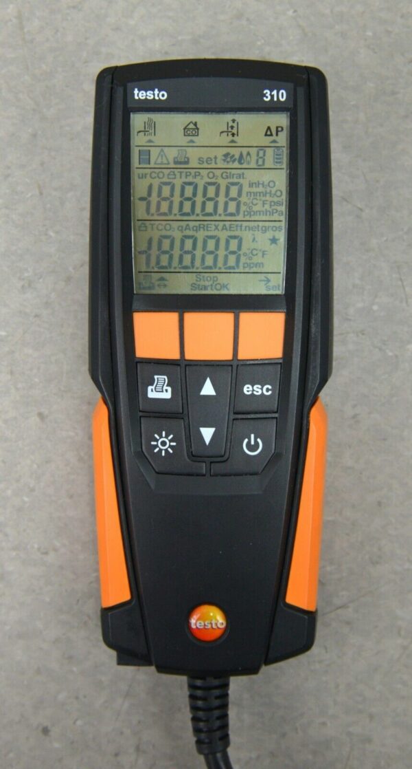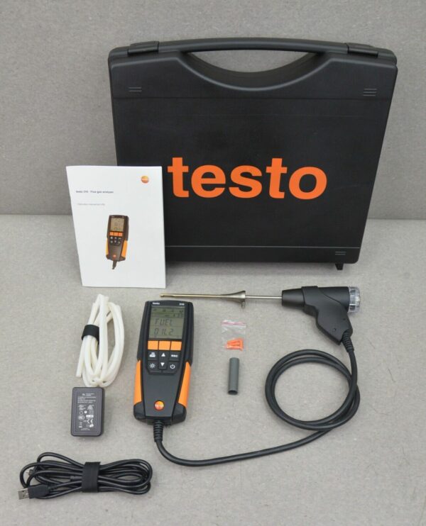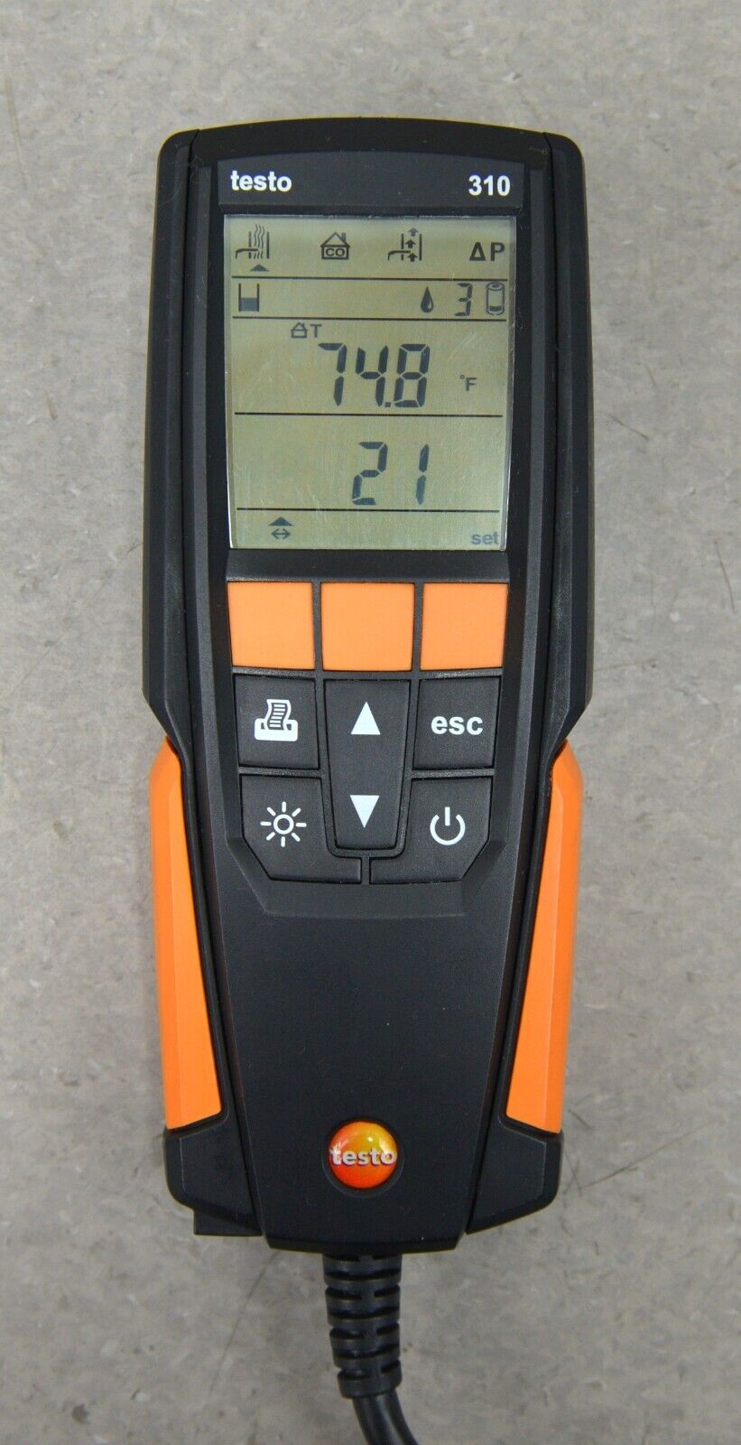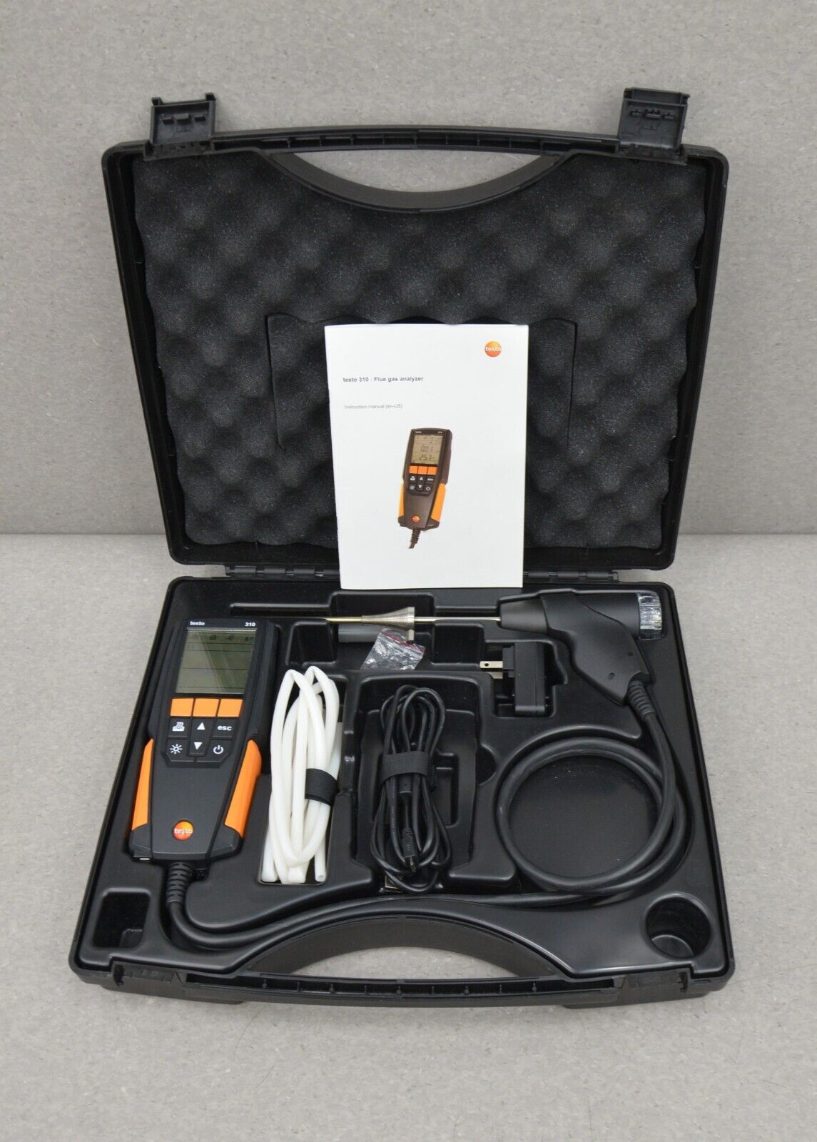 This Testo 310 Residential Combustion Analyzer Kit 05633100 is in excellent working condition. This system powers on properly. This system appears to have little to no use. The internal battery holds a charge. All connection points are clean and in good condition. This kit does not come with a printer. This unit comes with a 30 day satisfaction guarantee. Includes everything in the pictures and nothing else.