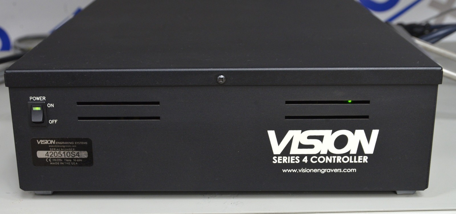 This Vision Engraving 2550 CNC Router / Engraver System & ELTE Motor TMPE3 12/2 is in good working condition. The unit powers on and movies smoothly through all range of motion. The controller responds to selections. The equipment inspection and maintenance worksheet states that a required inspection, replacement, or maintenance is due. There are some minor scuff marks from previous use (see photos). This unit comes with a 30 day satisfaction guarantee. Includes everything in the pictures and nothing else.