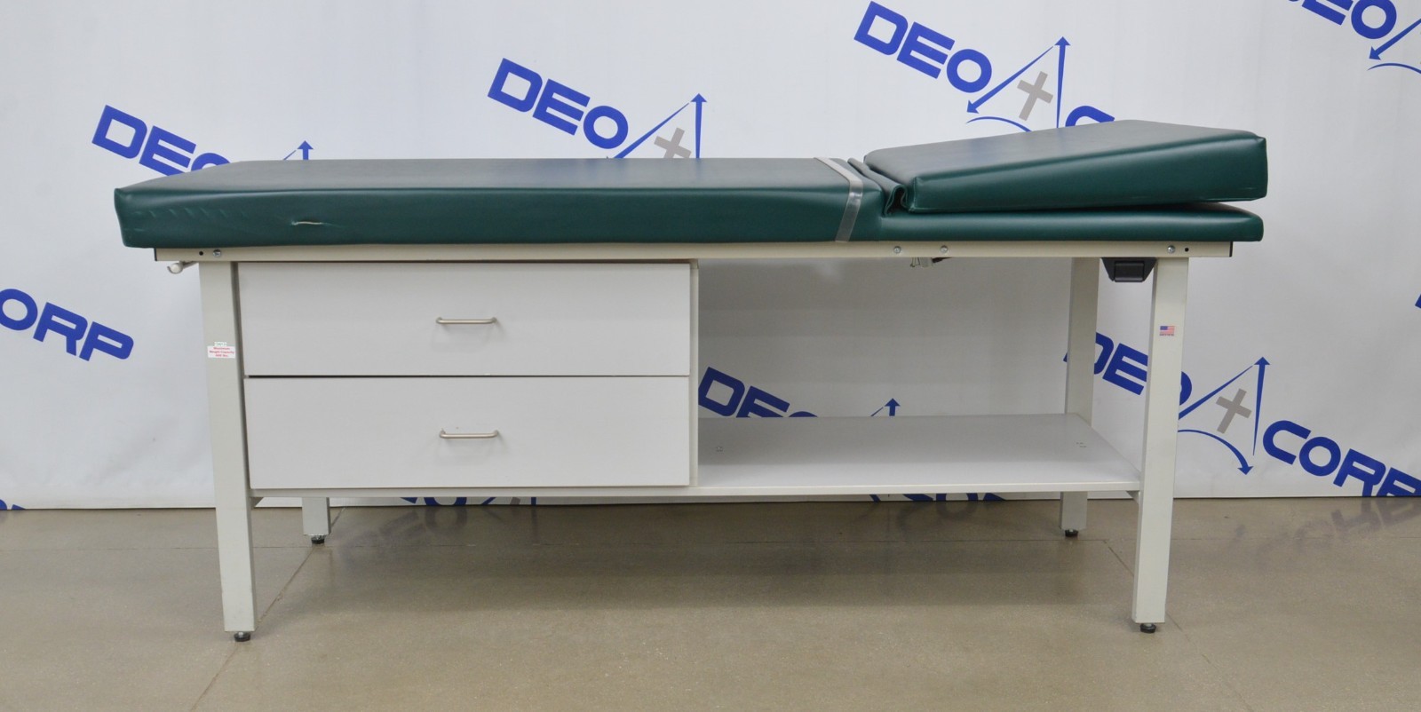 This Winco 8570D1 Treatment Table is in good working condition. The headrest adjusts properly. The right bracket for the bottom drawer has a stripped screw hole, so it is not secured properly. There are some scuff marks as well as tears and indents in the upholstery from previous use (see photos). This unit comes with a 30 satisfaction guarantee. Includes everything in the pictures and nothing else.