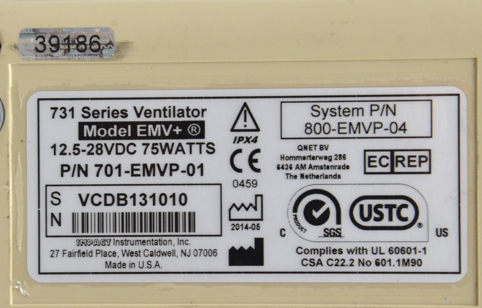 This ZOLL EMV+ 731 Series Ventilator W/ Masimo SpO2 is in good working condition. The the unit powers on and respond properly to selections. The connection points are clean and in good condition. This unit was tested with a power supply that is not included. This unit is due for a PM. There are small cracks and scuff marks in the plastic from previous use (see photos). This unit comes with a 30 day satisfaction guarantee. Includes everything in the pictures and nothing else.