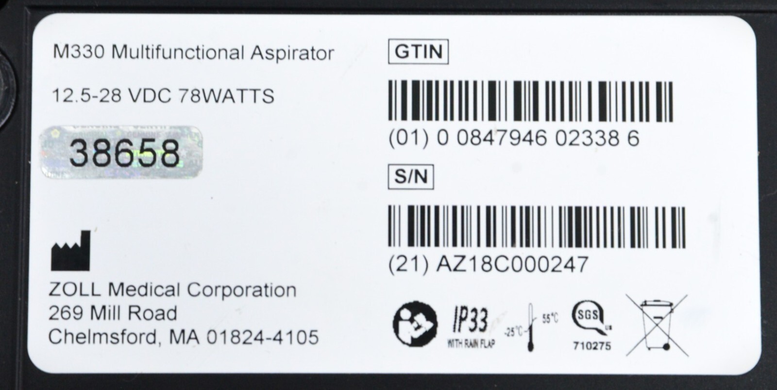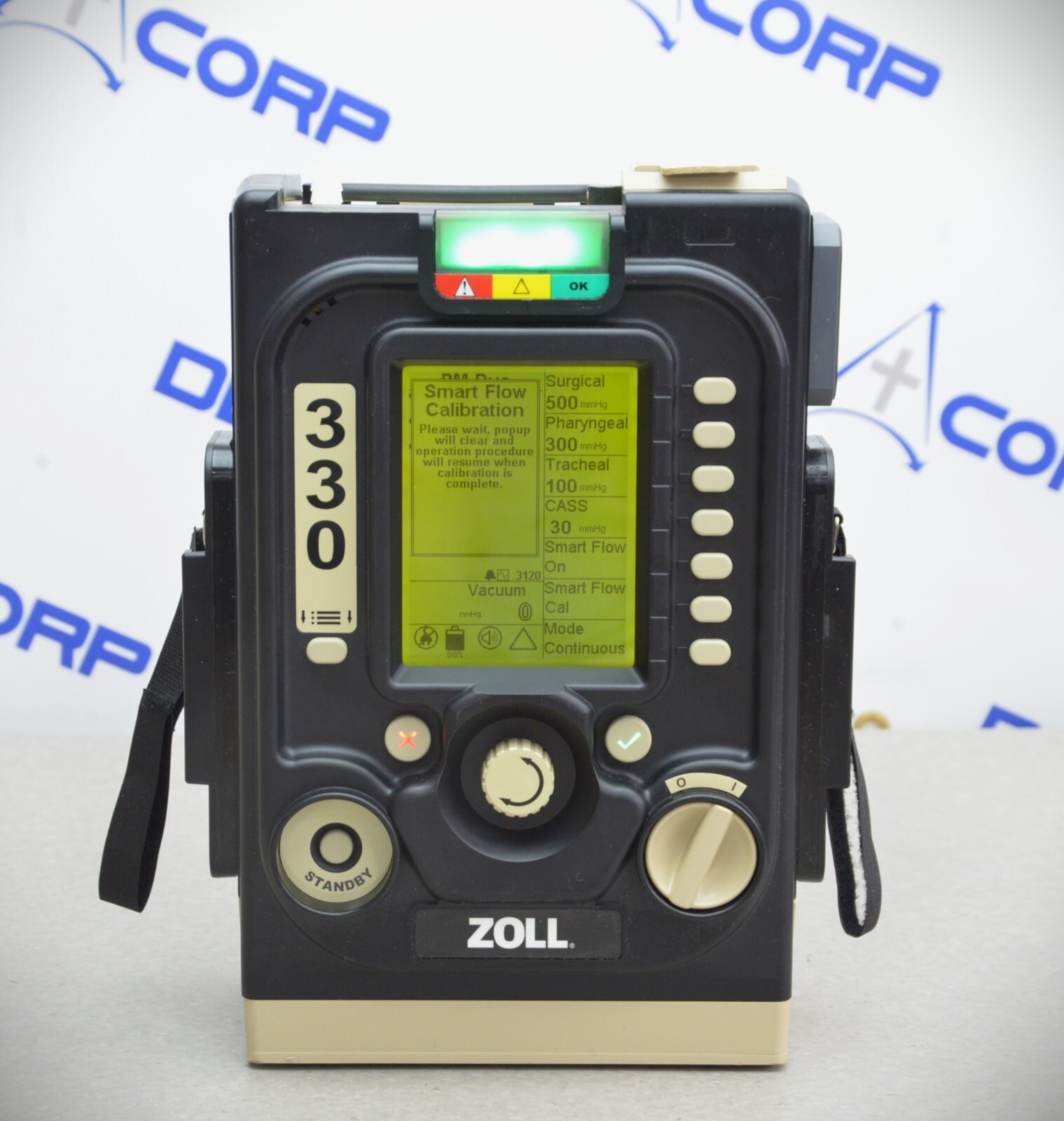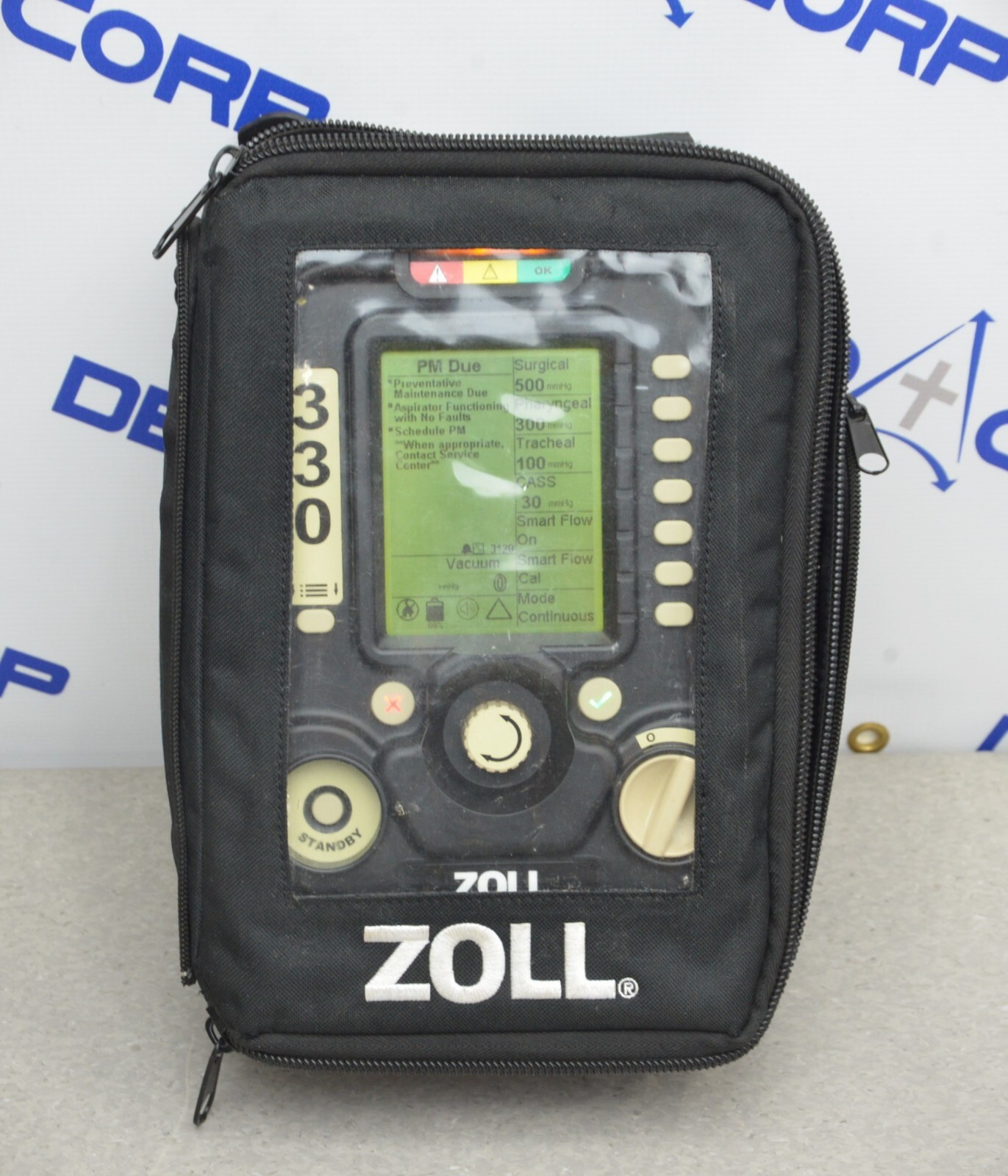This Zoll M330 Portable Multifunction Aspirator With Case is in good working condition. This unit powers on properly. The display screen produces a clear image and buttons and dial respond to selection. This unit states a PM is due which indicates preventative maintenance is due. There is a minor scuff marks from previous use (see photos). This unit comes with a 30 day satisfaction guarantee. Includes everything in the pictures and nothing else.