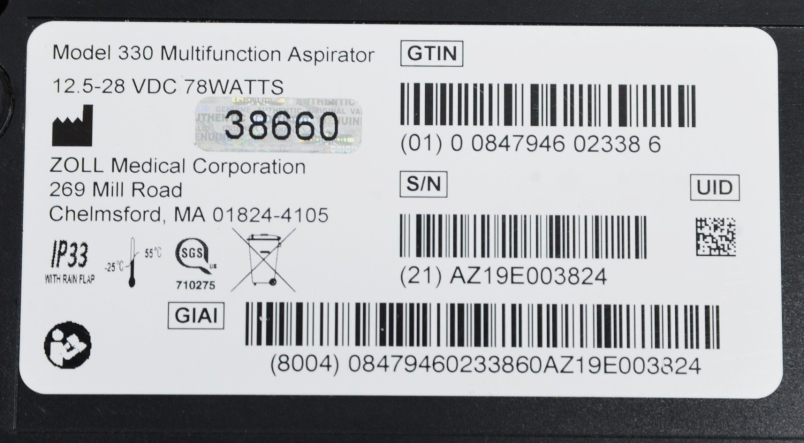 Zoll Model 330 Portable Multifunction Aspirator
