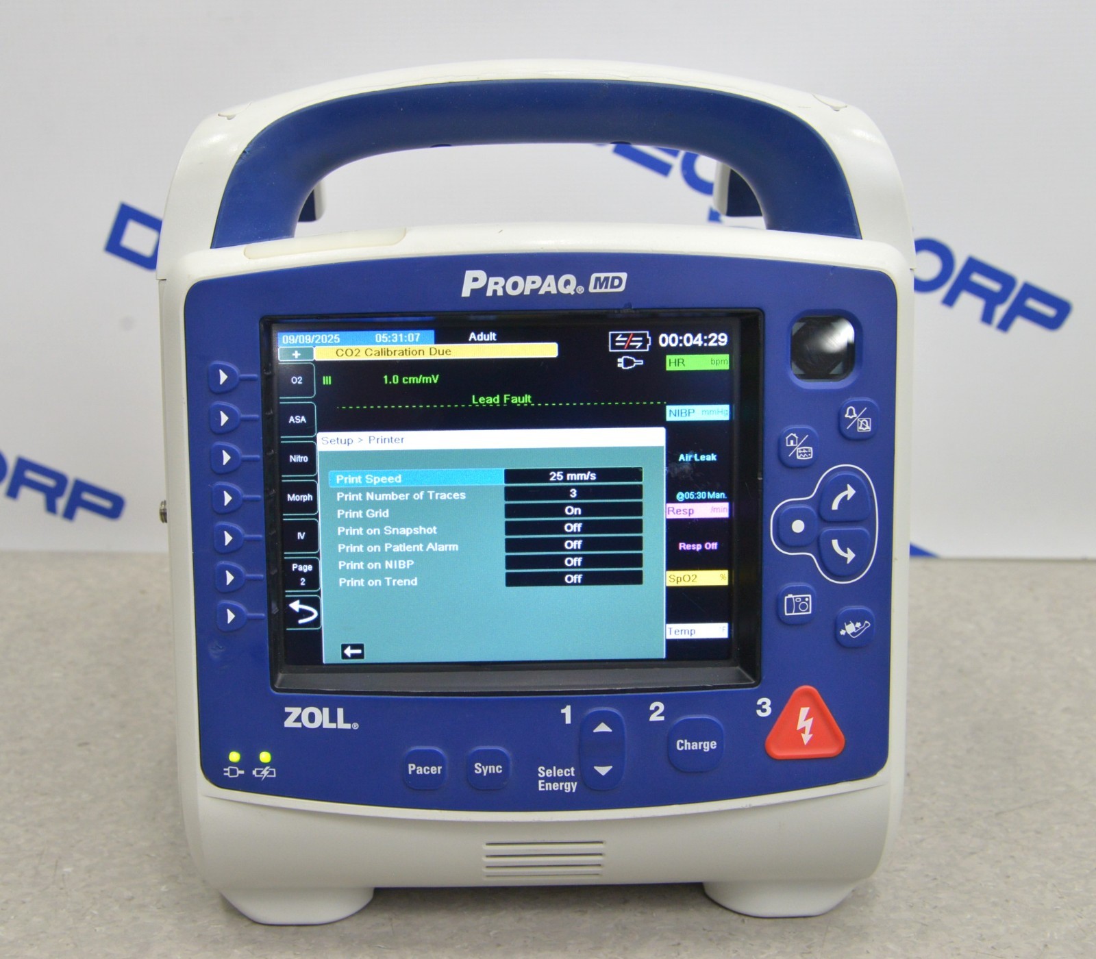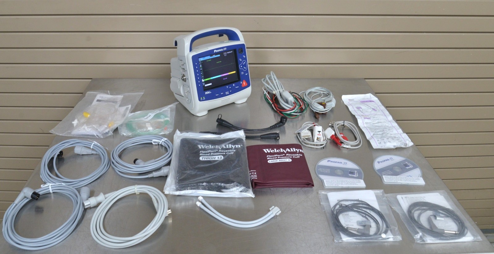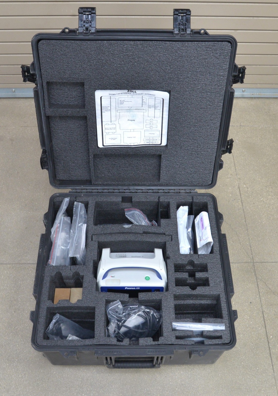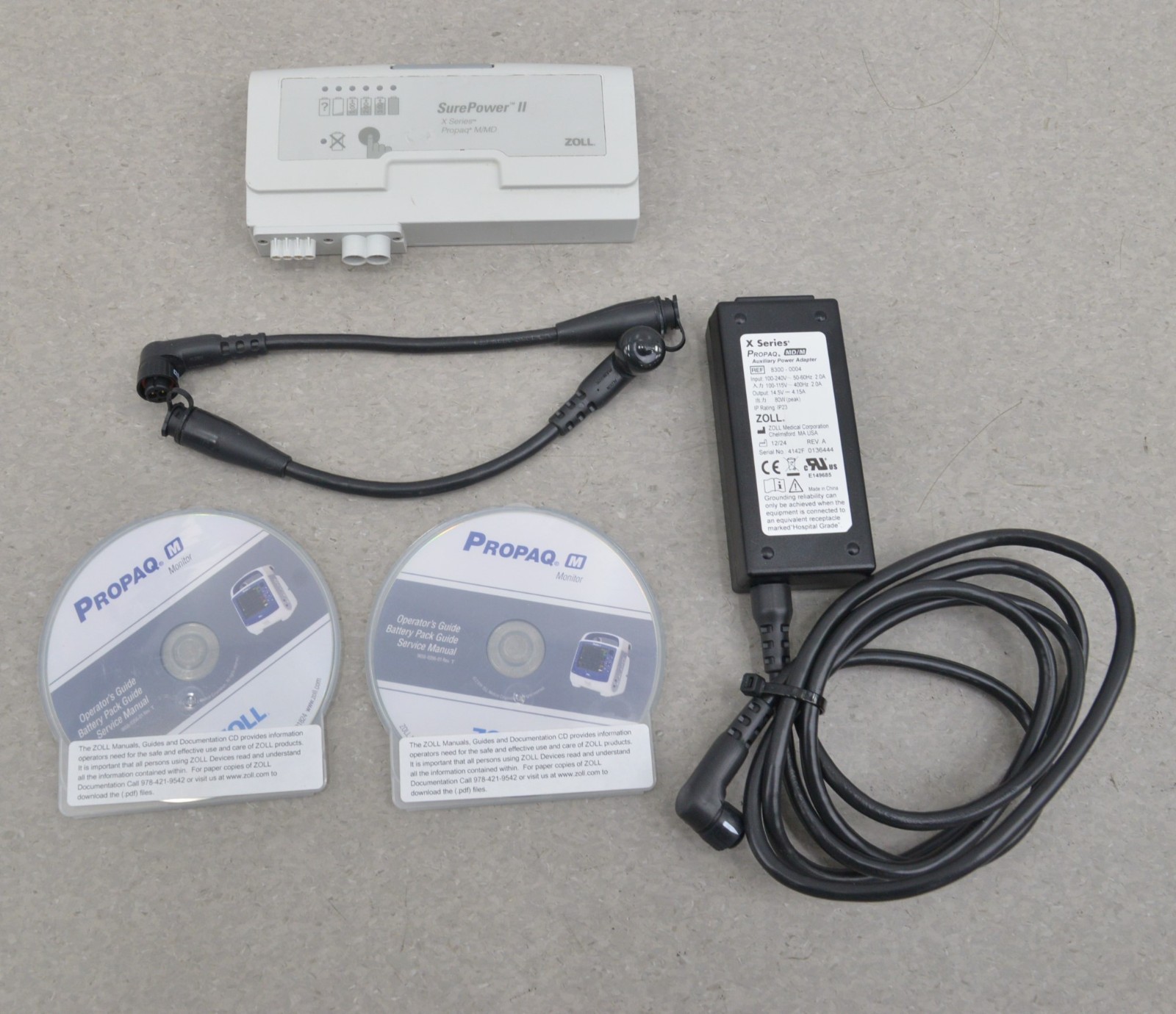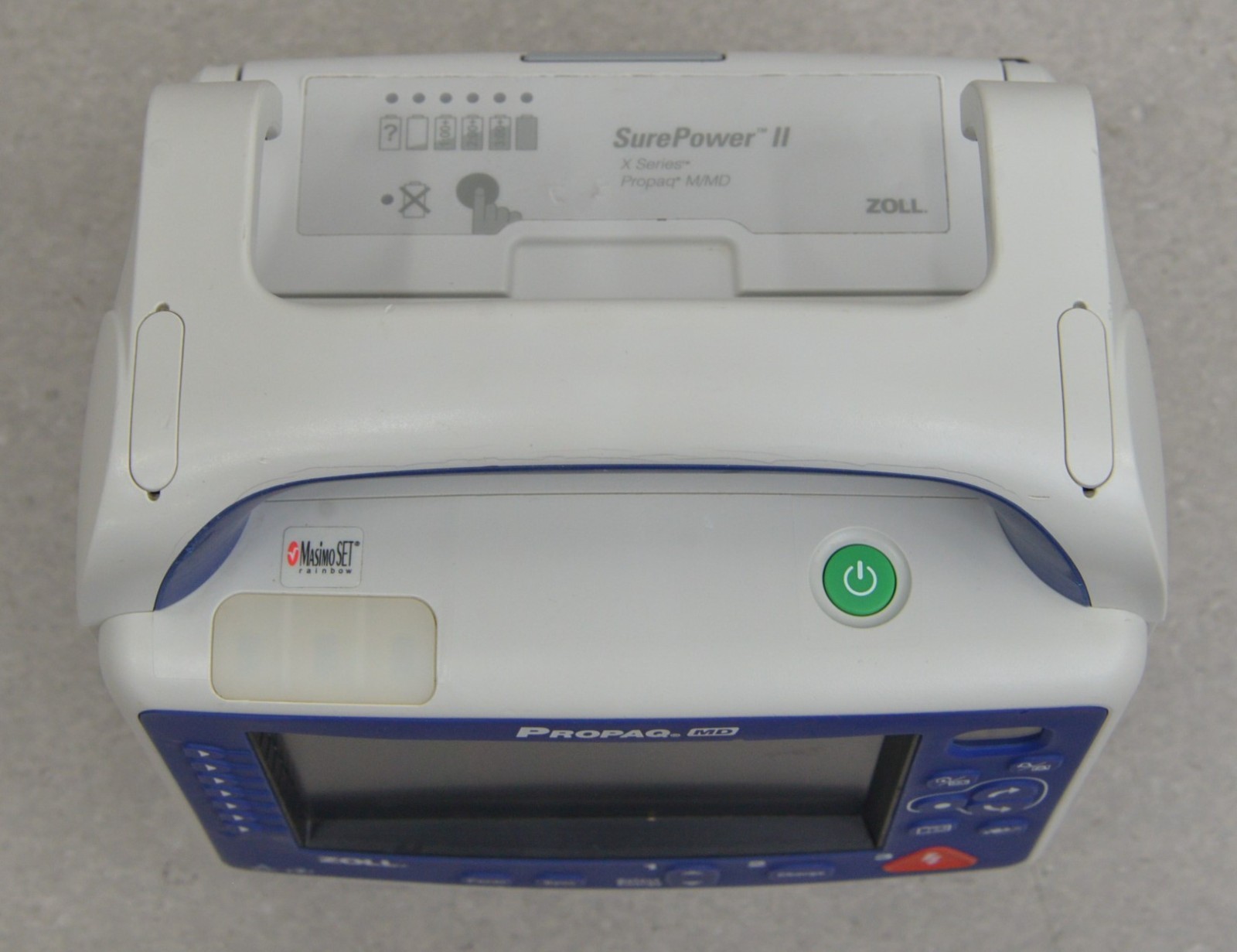 This Zoll ProPaq Monitor & Defibrillator W/ Masimo, 12-Lead, NiBP, & Temp is in good working condition. This unit powers on properly. The display screen produces a clear image and responds to selection. All connection points are clean and in good condition. A power supply is included with this unit. There are a few minor scuff marks from previous use and the screen has a scratch on it (see photos). This unit comes with a battery, but it does not hold a charge. This unit comes with a 30 day satisfaction guarantee. Includes everything in the pictures and nothing else.