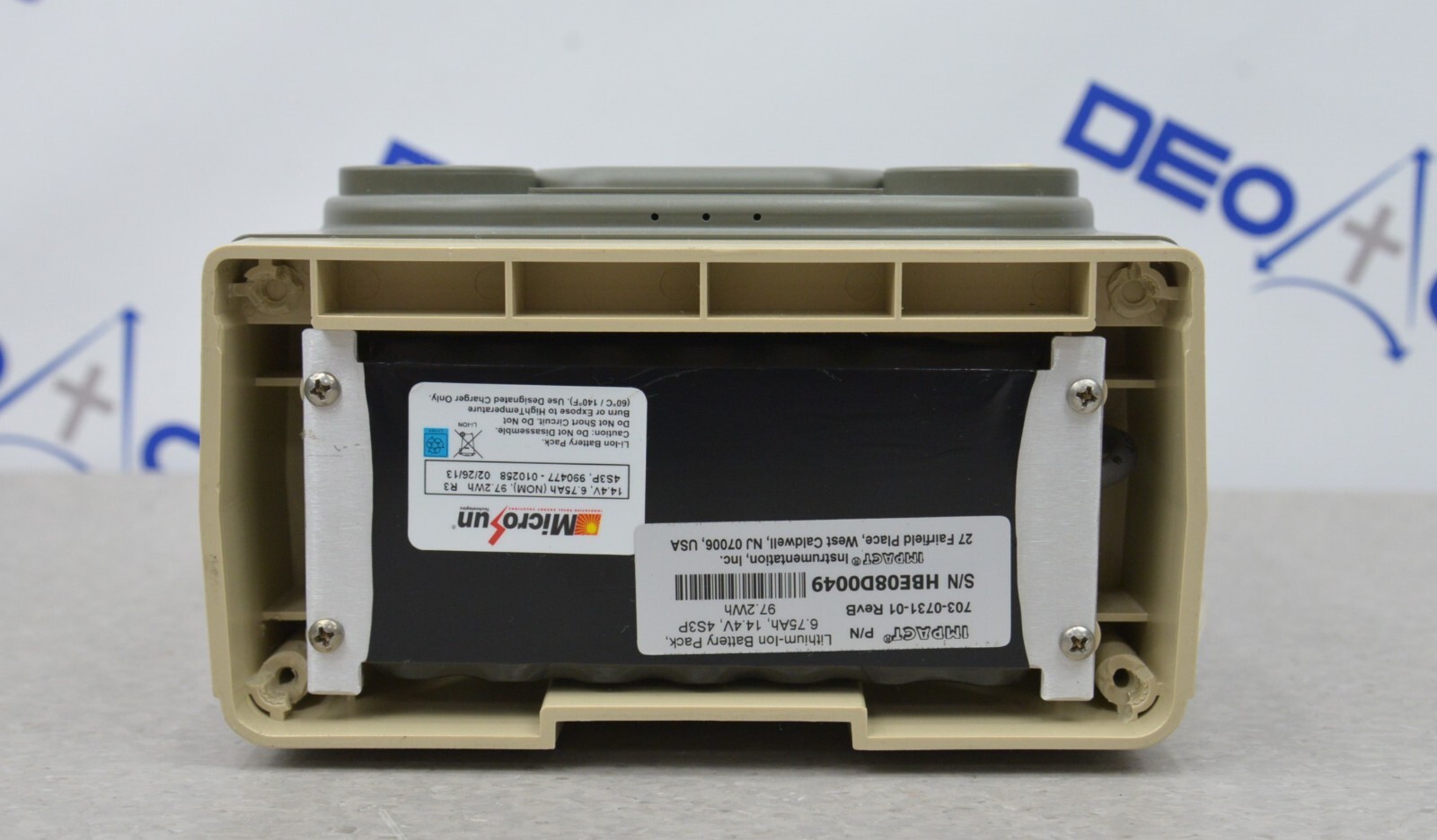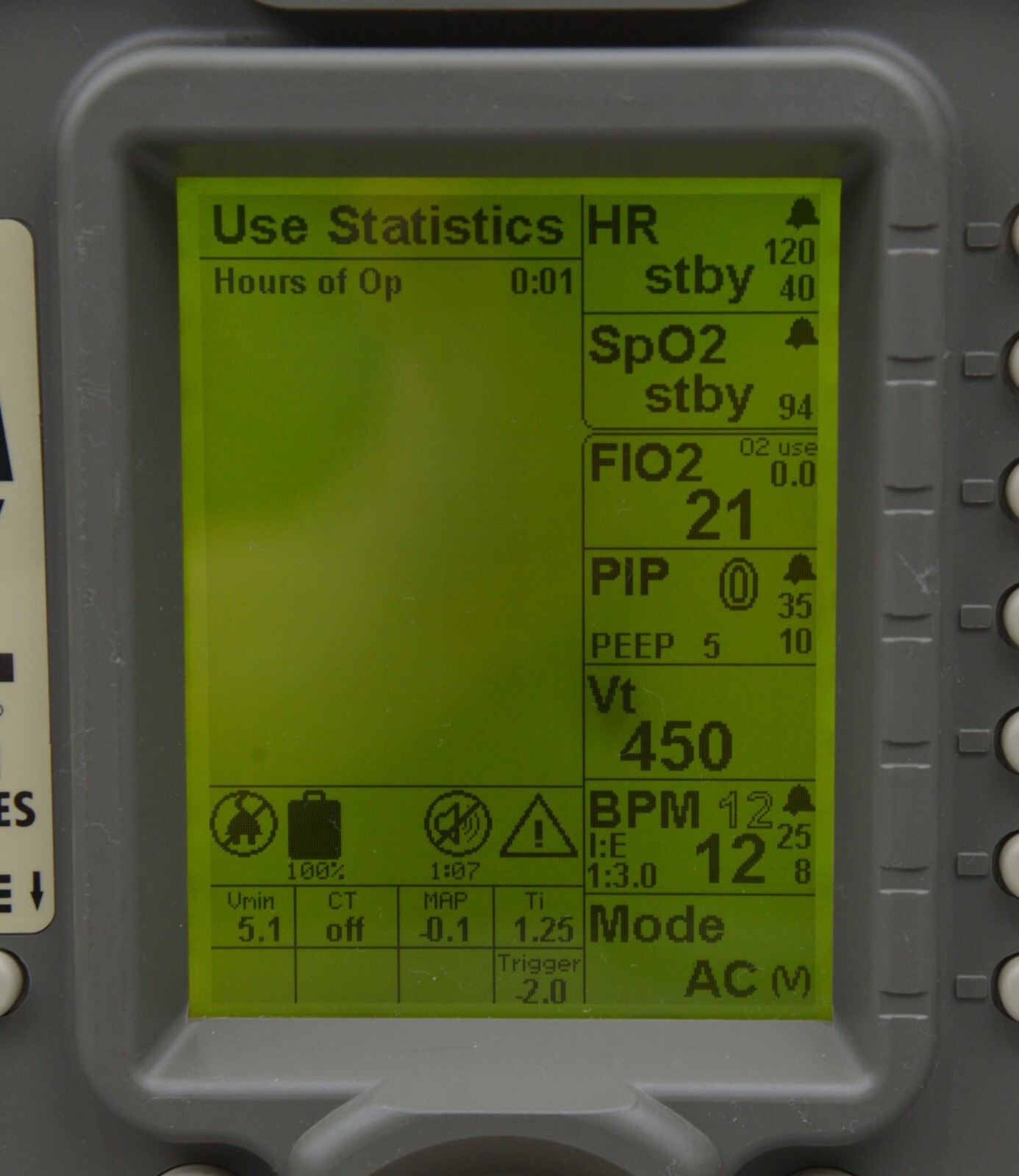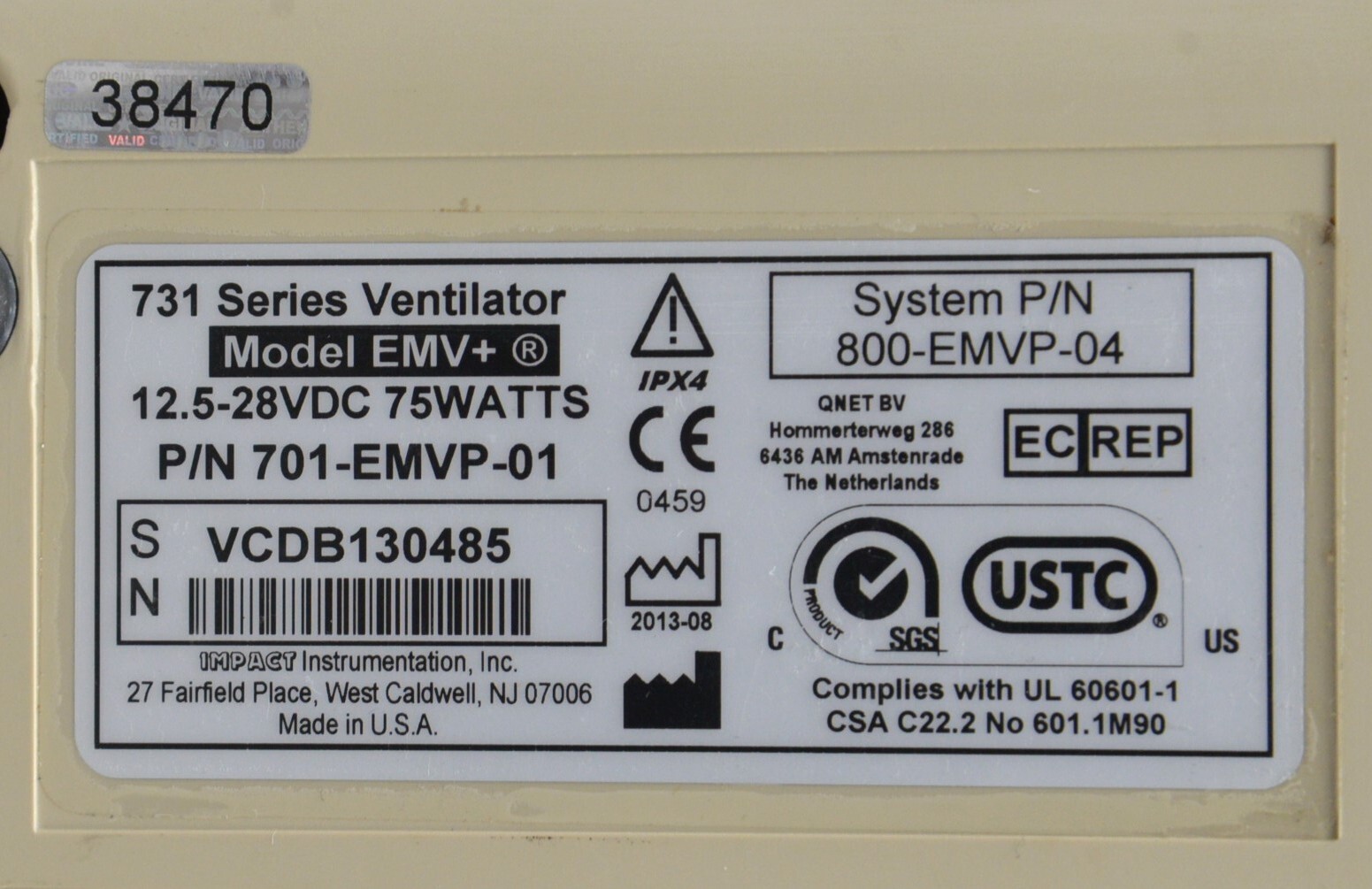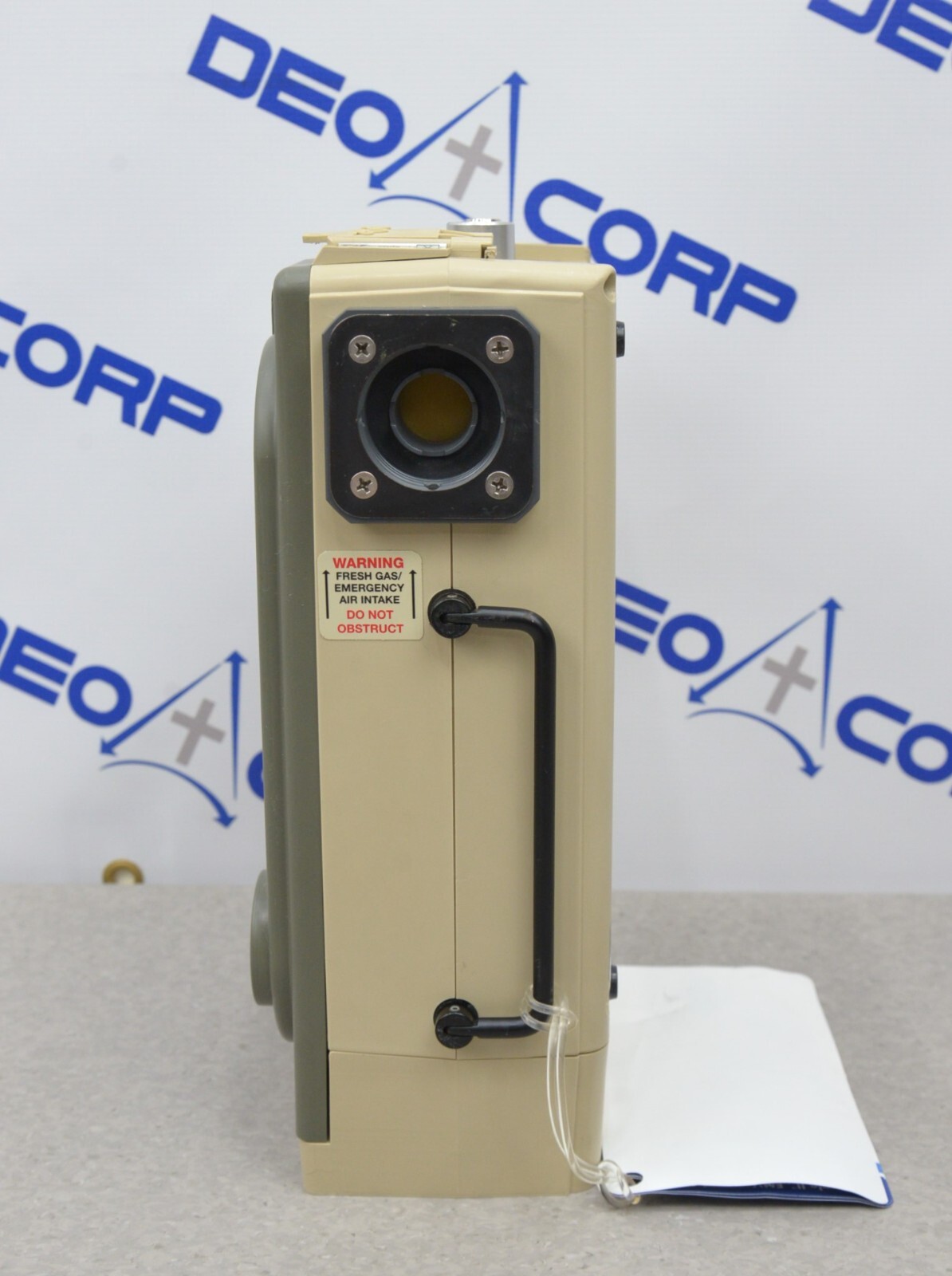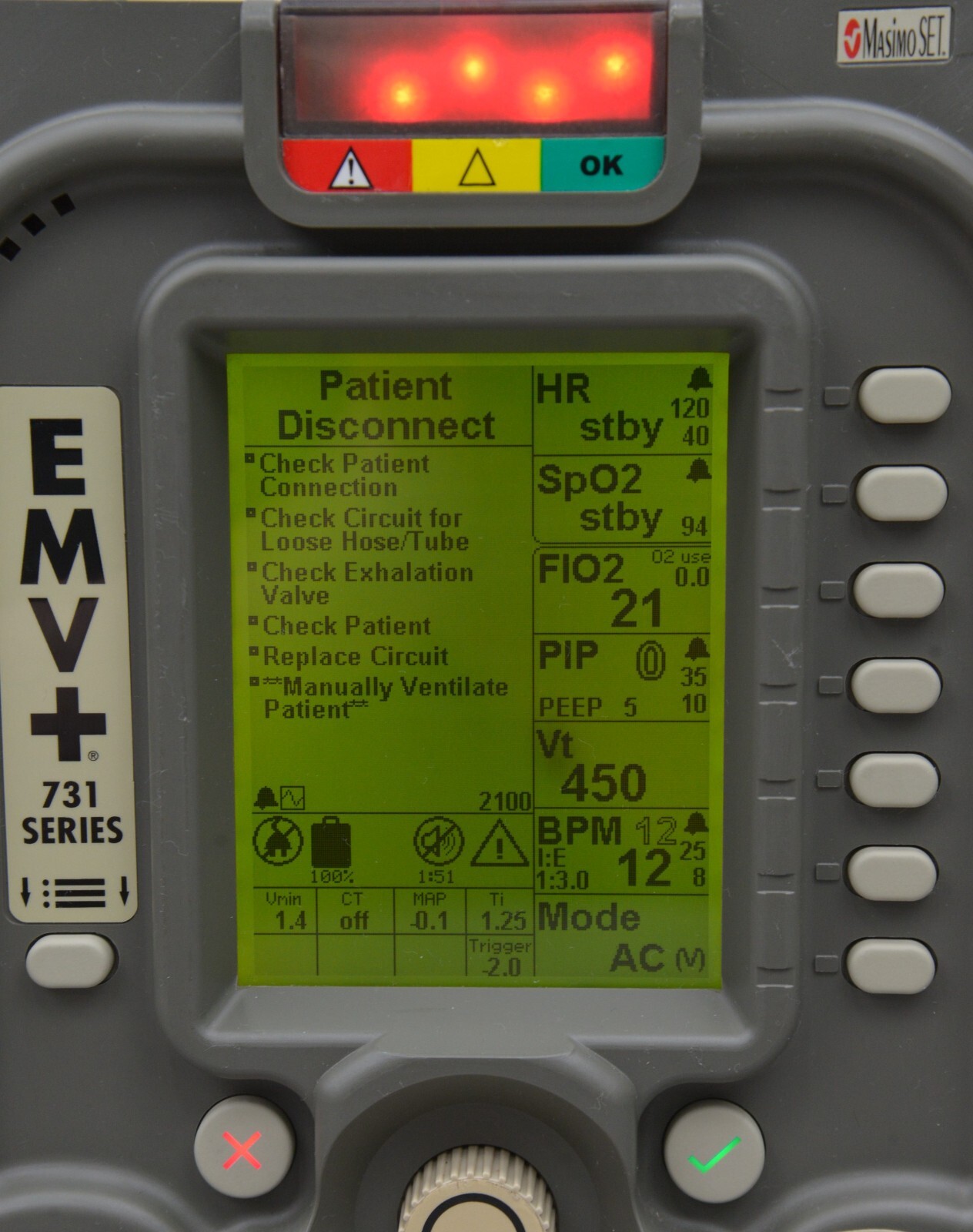 This Zoll Uni-Vent EMV+ 731 Series Ventilator W/ Masimo SpO2 is in good working condition. The the unit powers on and the buttons and knobs respond properly to selections. Connection points are clean and in good condition. The battery holds a charge. This unit does not include the power supply. This unit is due for a PM (see photos). There are minor scuff marks and the battery cover is missing. This unit comes with a 30 day satisfaction guarantee. Includes everything in the pictures and nothing else.